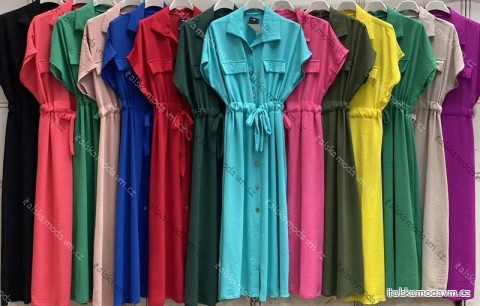 Šaty dlouhé košilové krátký rukáv dámské nadrozměr TIEN (42/44/46 ONE SIZE) ITALSKÁ MÓDA IMC25222