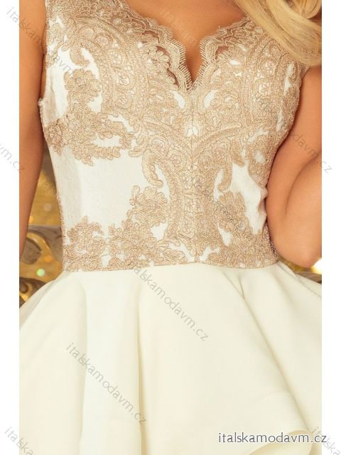 ZBOŽÍ (22083) > 200-1 CHARLOTTE - Exkluzivní šaty s krajkovým výstřihem - zlato / béžová + ecru