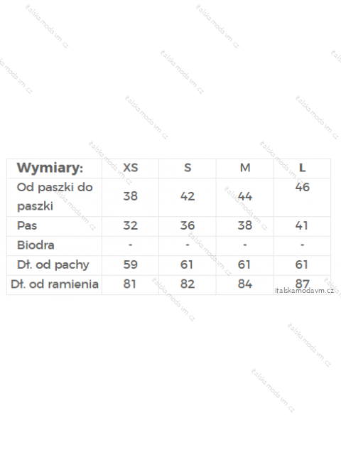 | Z podpaží do podpaží | 38 | 42 | 44 | 46 |