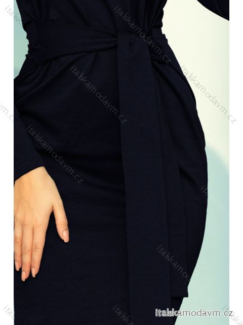 209-4 Šaty se širokým svázaným pásem - tmavě modrá barva