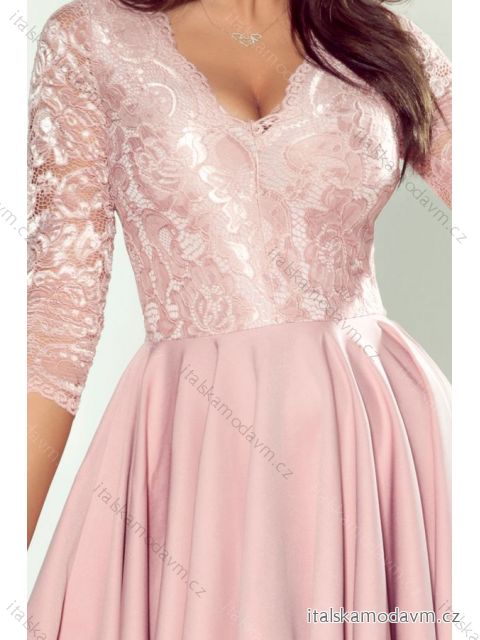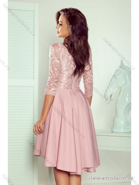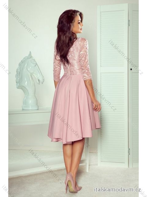 210-11 NICOLLE - šaty s delším hřbetem s krajkovým výstřihem - růžová