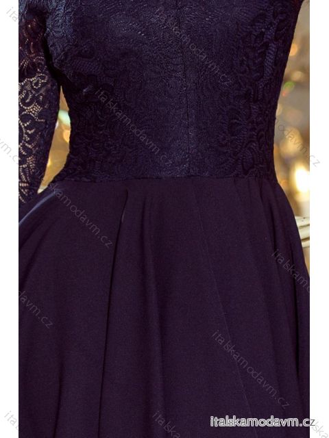 210-2 NICOLLE - šaty s dlhším chrbtom s čipkovým výstrihom - tmavomodrá