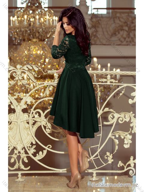 210-3 NICOLLE - šaty s dlhším chrbtom s čipkovým výstrihom - tmavo zelená
