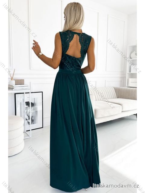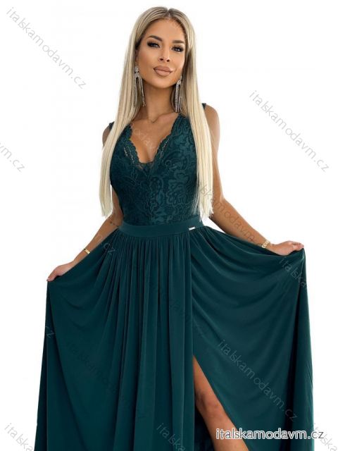 ZBOŽÍ (22028) > 211-6 LEA dlouhé šaty s krajkovým výstřihem - zelené