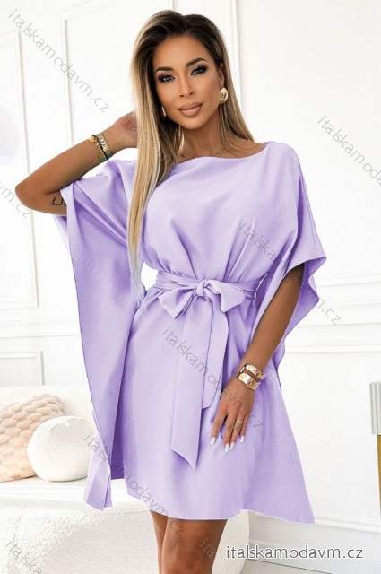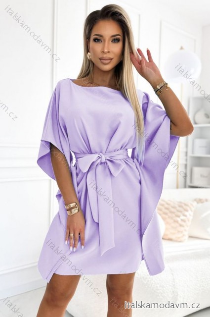 SOFIA Motýlí šaty s páskem - světlý vřes. Polská výroba.