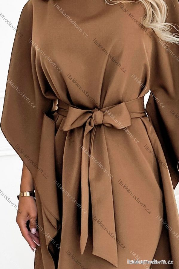 Měkká, příjemná látka se v pohybu krásně splývá, zatímco asymetrická křídla/pončo decentně maskují oblast ramen a pasu. Jednoduchý kulatý výstřih a délka ke kolenům vytvářejí moderní a nadčasový vzhled. Vyrobeno v Polsku - kvalita značky Numoco.
