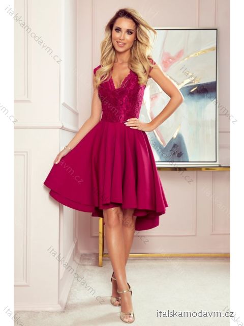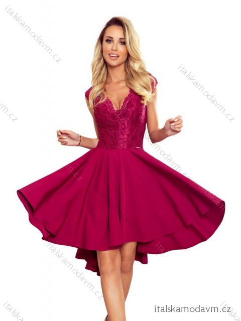 ZBOŽÍ (22079) > 300-4 PATRICIA - šaty s delším hřbetem s krajkovým výstřihem - vínová barva
