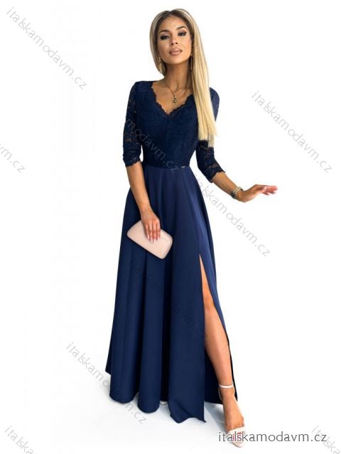 ZBOŽÍ (23737) > Oblečení dámské (18907) > Šaty (10183) > Šaty na ramínkách (1909) > 309-6 AMBER elegantní krajkové dlouhé šaty s výstřihem - tmavě modrá