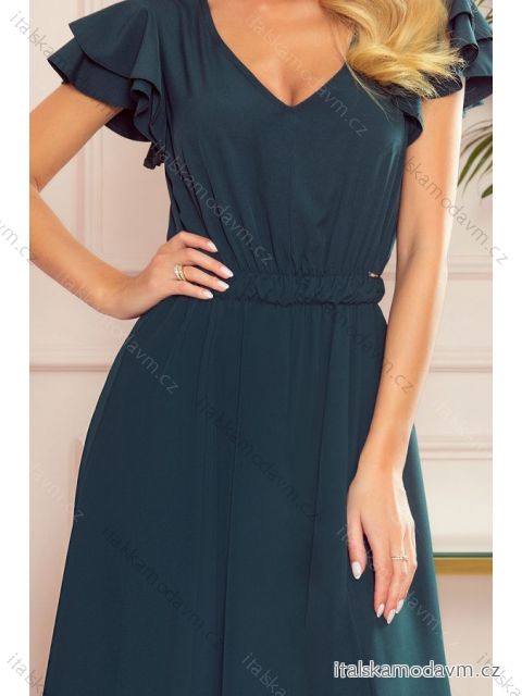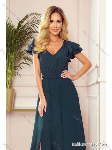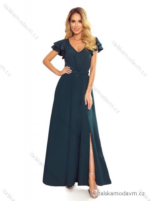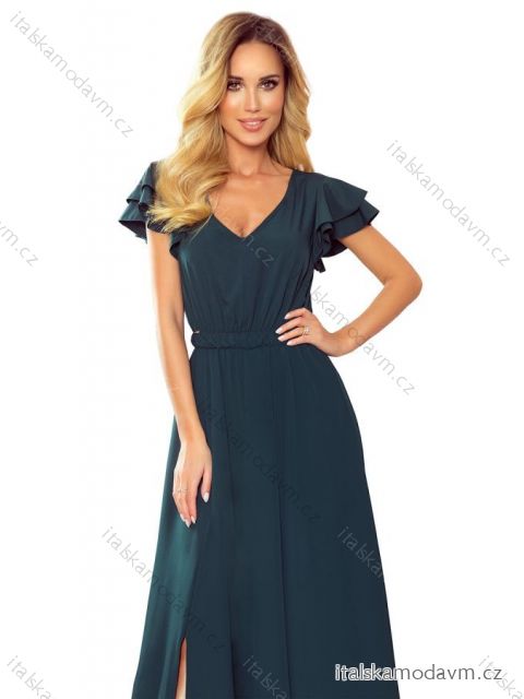 310-1 LIDIA dlouhé šaty s výstřihem a volánkami - zelené