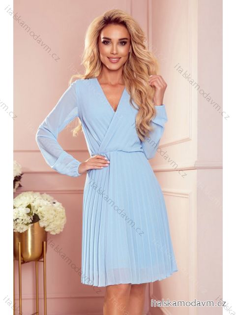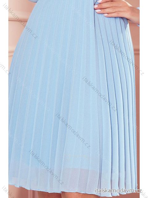 ZBOŽÍ (21607) > oblečenie dámske (17434) > šaty (9110) > šaty elegantné (2559) > Šaty elegantné dlhý rukáv (860) > 313-10 ISABELLE Plisované šaty s výstrihom a dlhým rukávom - svetlo modré