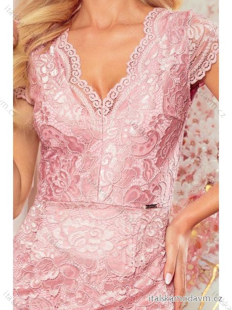 Krajkové šaty s výstřihem a krátkými rukávy. Barva: špinavě růžová. Klasické a elegantní. Polská produkce. Značka Numoco.