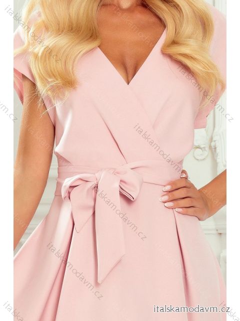 ZBOŽÍ (23710) > oblečenie dámske (18882) > šaty (10178) > šaty elegantné (2745) > Šaty elegantné Kr. ruk. (751) > 348-1 SCARLETT - rozšírené šaty s výstrihom - púdrovo ružové