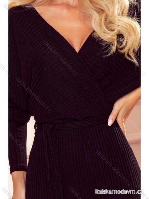 ZBOŽÍ (21786) > Oblečení dámské (17609) > Šaty (9206) > Šaty na ramínkách (1602) > 356-3 Zavinovací svetrové šaty se zavazováním - černé pruhy
