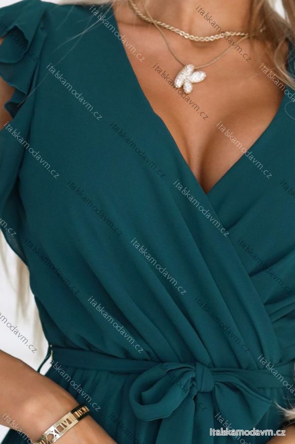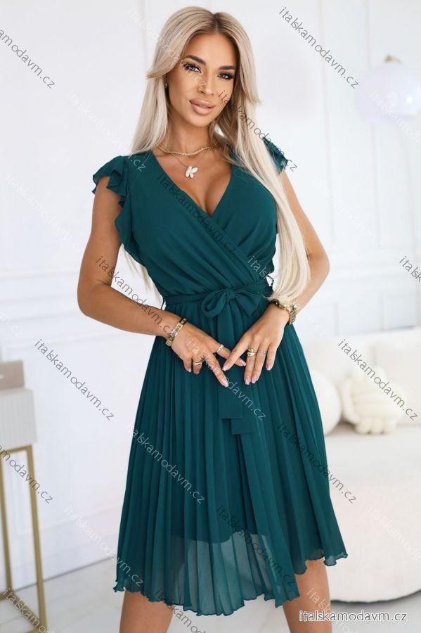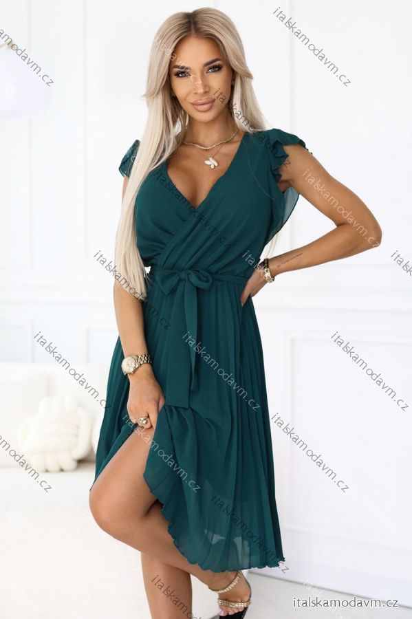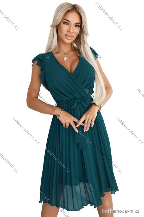 ZBOŽÍ (22753) > 374-8 POLINA Plisované šaty s výstřihem a volánky - zelené