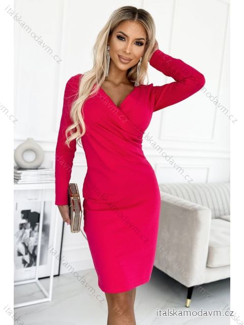 ZBOŽÍ (21776) > oblečenie dámske (17598) > šaty (9197) > šaty elegantné (2590) > 398-4 Elegantné bavlnené šaty s obálkovým výstrihom a dlhým rukávom - fuchsiové