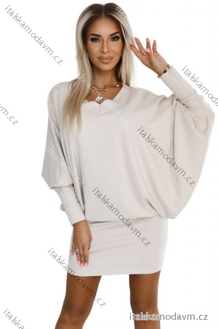 ZBOŽÍ (22028) > 402-7 Svetrové teplé netopýří šaty s výstřihem - béžové
