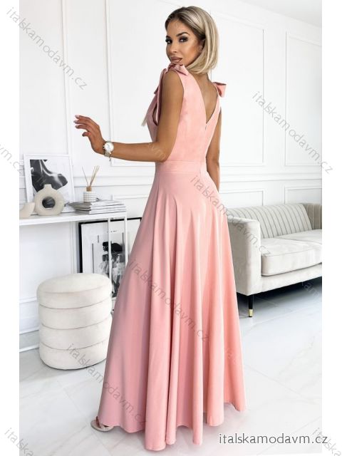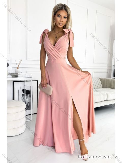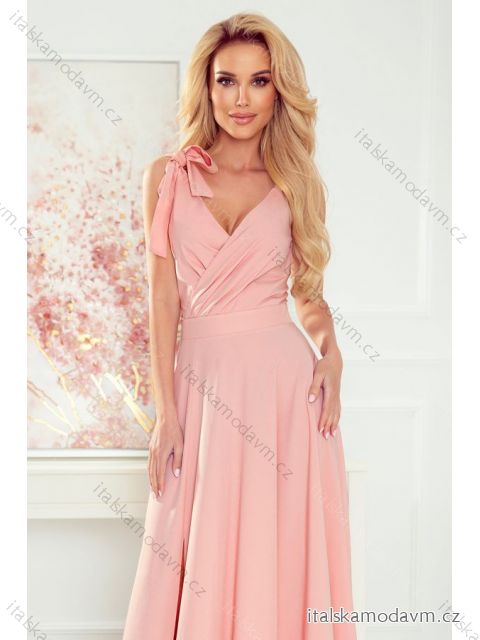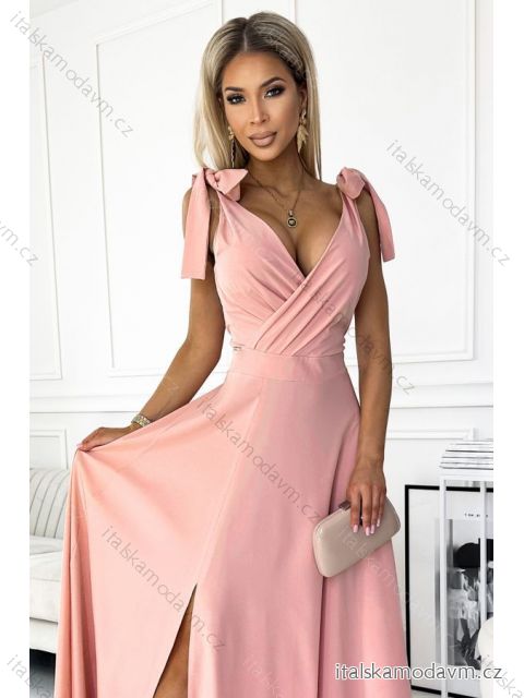 ZBOŽÍ (22821) > oblečenie dámske (18170) > šaty (9676) > Šaty na ramienkach (1718) > 405-3 ELENA Dlhé šaty s výstrihom a zaväzovaním na pleciach - špinavoružové