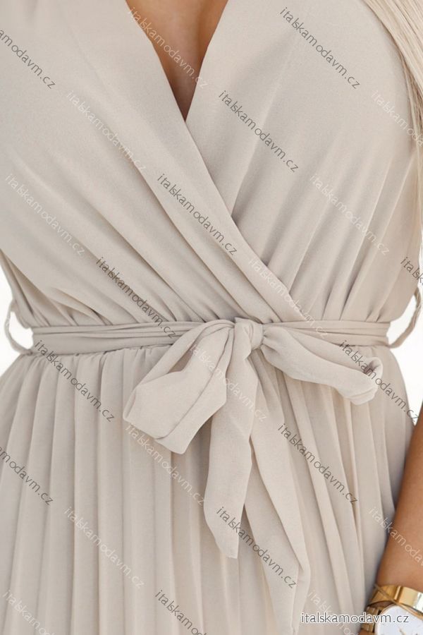 ZBOŽÍ (21975) > 424-7 Chiffon pleated dress with neckline and ruffles - beige