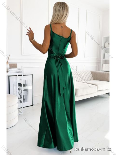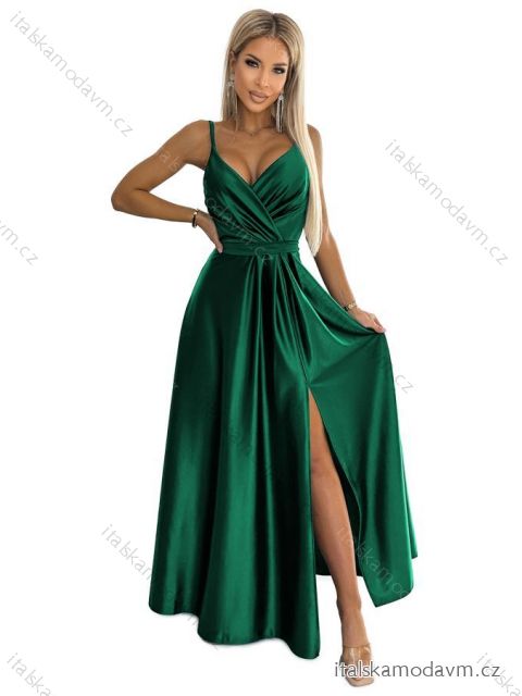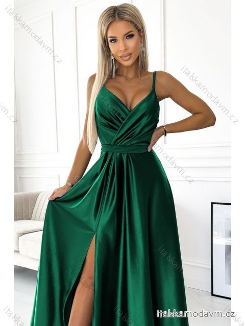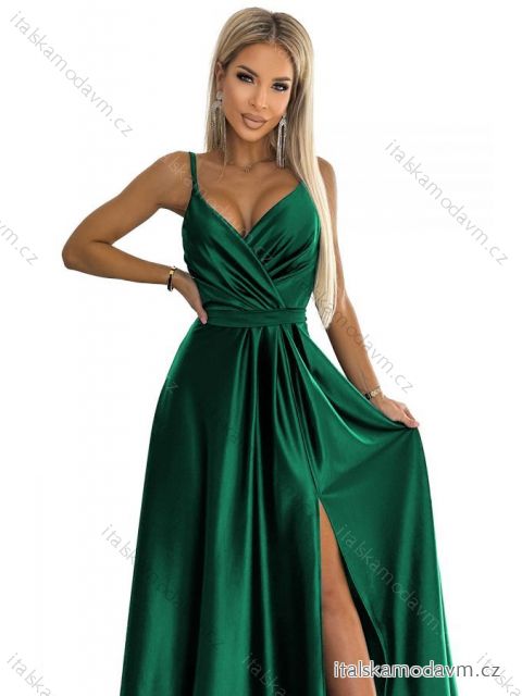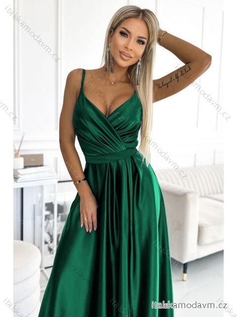 512-1 JULIET elegantní dlouhé saténové šaty s výstřihem - zelené