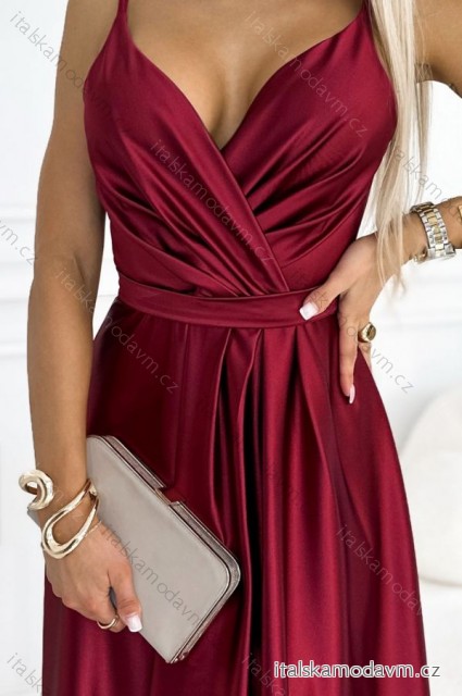 ZBOŽÍ (23737) > Oblečení dámské (18907) > Šaty (10183) > Šaty na ramínkách (1909) > 512-6 JULIET elegantní dlouhé saténové šaty s výstřihem a rozparkem na nohavicích - vínová barva