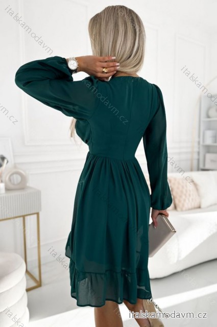 ZBOŽÍ (21960) > oblečenie dámske (17887) > šaty (9459) > Šaty krátke - minišaty (595) > 538-2 MILA Šifónové midi šaty s dlhými rukávmi a výstrihom - zelené