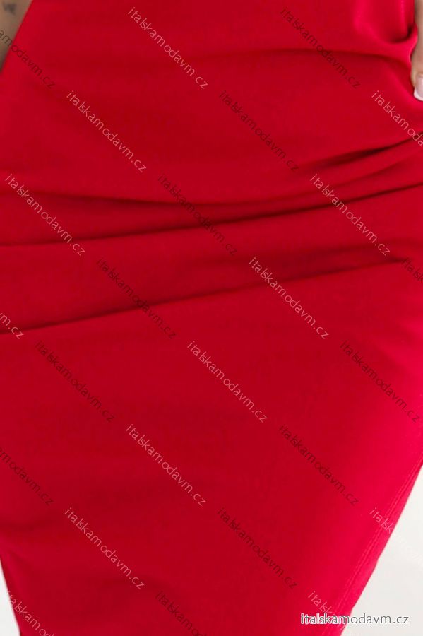 Smyslné červené midi šaty s výstřihem a rozparkem. Přiléhavý střih, tenká ramínka a elegantní styl. Numoco Basic evropská výroba.