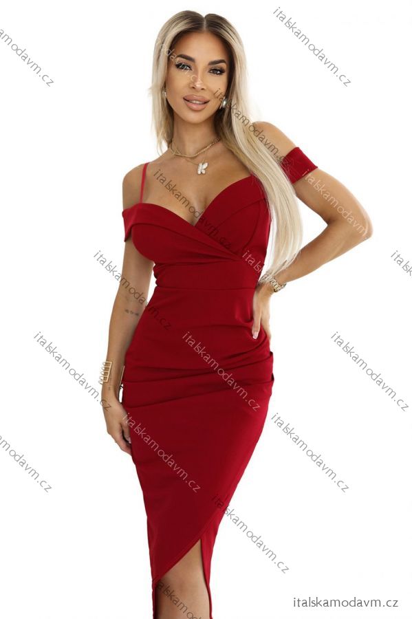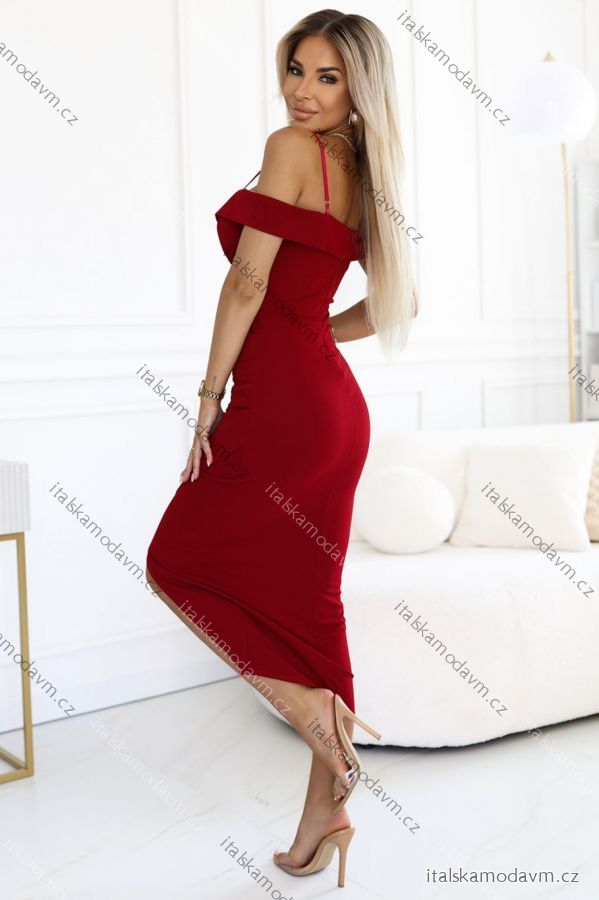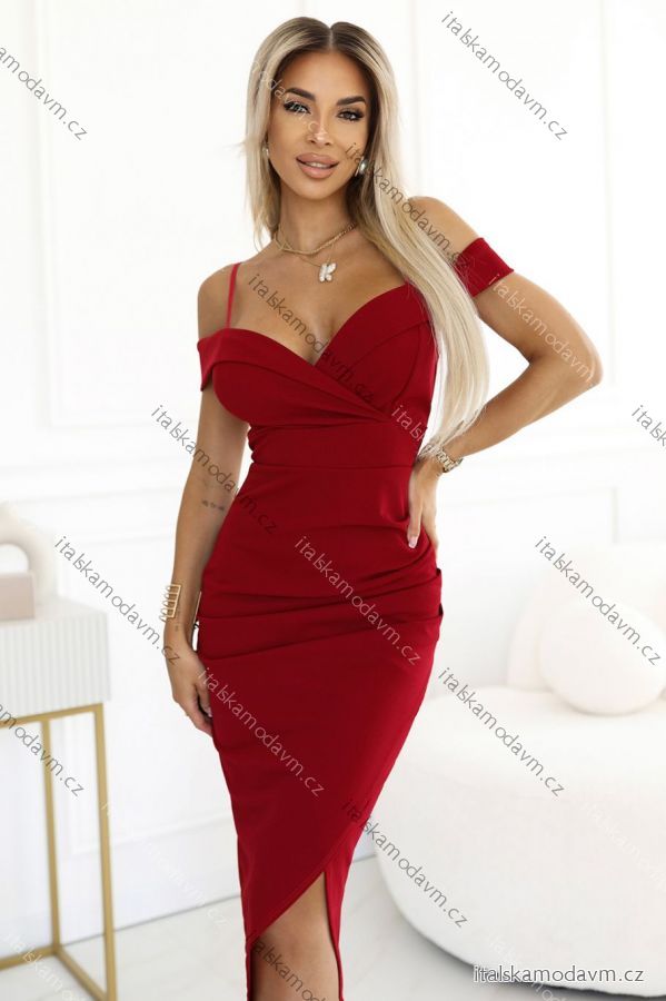 ZBOŽÍ (23054) > 564-8 CALLIE Midi šaty s výstřihem na ramena - vínové