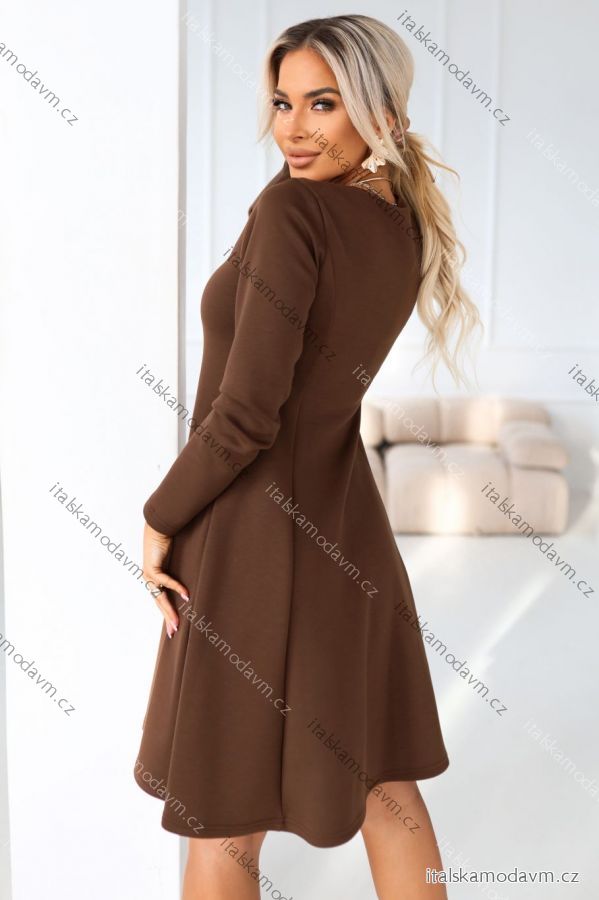 ZBOŽÍ (22168) > oblečenie dámske (18405) > šaty (9751) > šaty elegantné (2727) > Šaty elegantné Kr. ruk. (759) > 574-2 IVANA pohodlné trapézové šaty s výstrihom a dlhými rukávmi - čokoládové