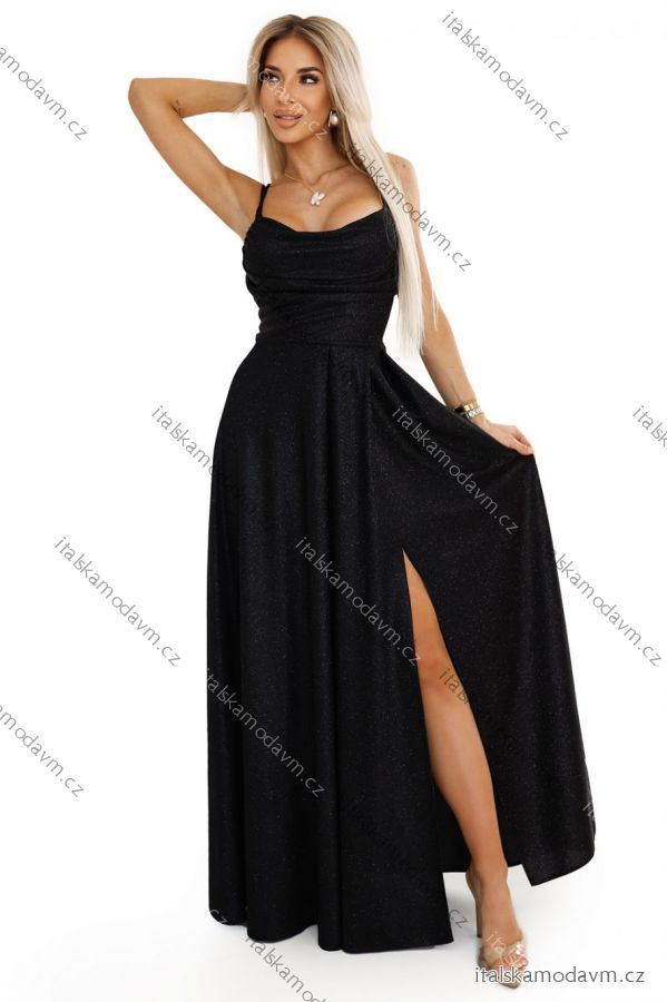 Dlouhé třpytivé šaty s korzetovým šněrováním - ČERNÉ - Numoco