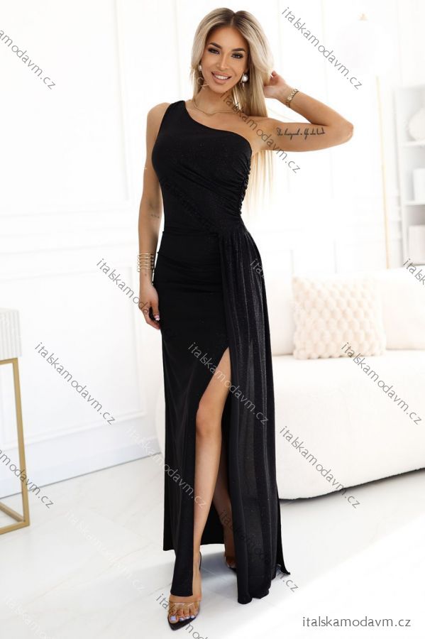 ZBOŽÍ (21549) > oblečenie dámske (17375) > šaty (9075) > ŠATY SPOLOČENSKÉ (2774) > Šaty plesové dlhé (1806) > 600-1 SELENA úžasné dlhé šaty na jedno rameno s trblietavým leskom a rozparkom na nohavici – ČIERNA