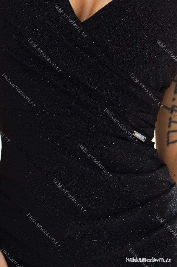 ZBOŽÍ (22804) > Oblečení dámské (18152) > Šaty (9665) > Šaty společenské (2853) > Šaty plesové krátké (798) > 610-1 Oslnivé třpytivé ceruzkové šaty s zavinovacím výstřihem a ramínky – černé