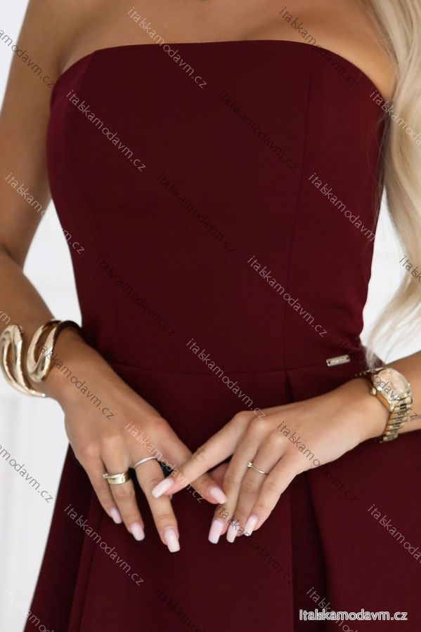 Vínové korzetové midi šaty - Numoco | Polská výroba