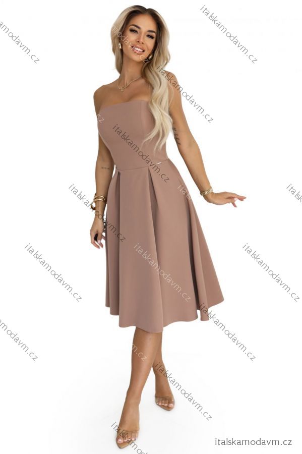 VIVIENNE - Midi šaty bez ramienok s korzetom a rozšíreným strihom | Numoco - Vyrobené v Poľsku