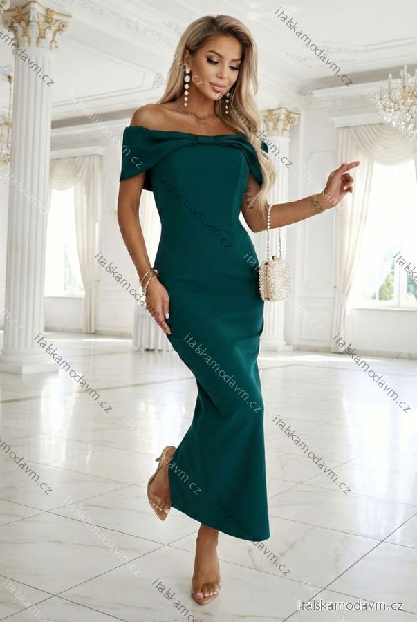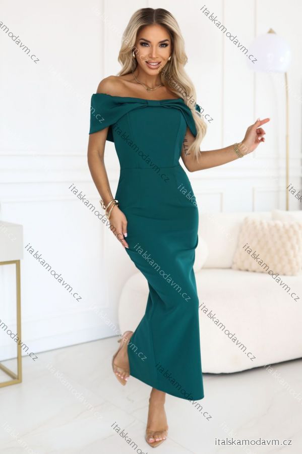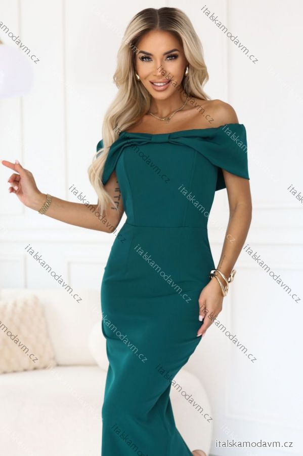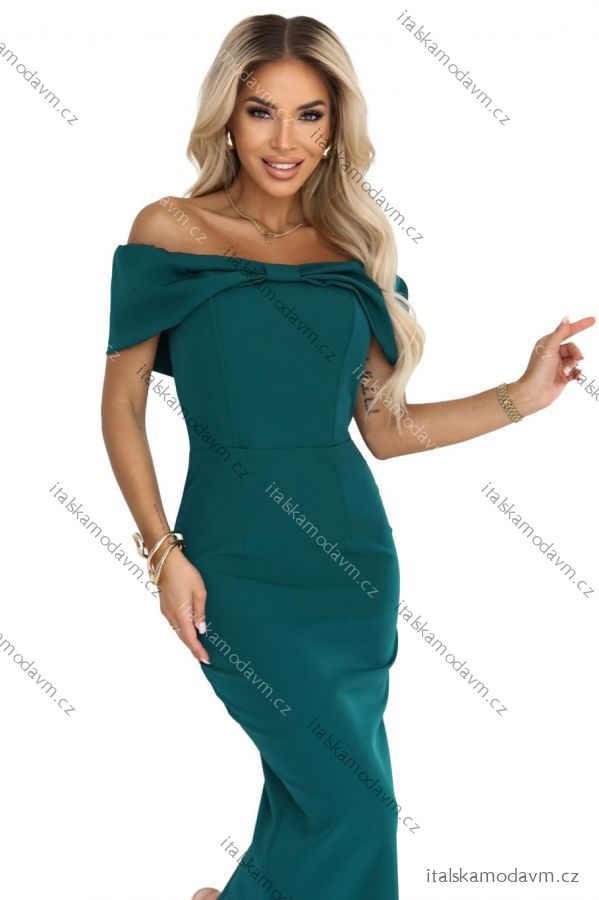 Toto jsou jedny z těch šatů, které udělají dojem ještě dříve, než cokoli řeknete. Tmavě lahvově zelená, odhalená ramena a mašle propracovaná do každého detailu vytvářejí styl, který přitahuje pohledy a zdůrazňuje ženské sebevědomí přirozeně a bez přehánění.