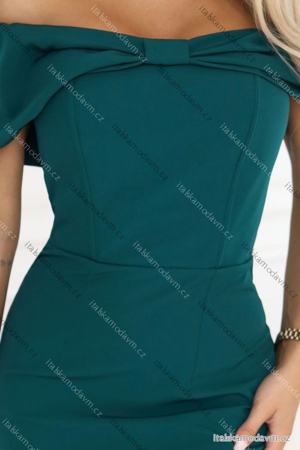 644-1 Smyslné midi šaty s mašlí u výstřihu - lahvově zelené