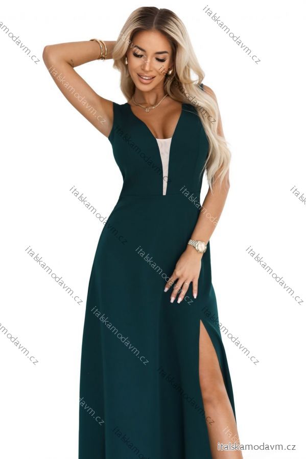 ZBOŽÍ (21962) > oblečenie dámske (17889) > šaty (9460) > ŠATY SPOLOČENSKÉ (3072) > Šaty plesové dlhé (2062) > 648-1 Módne, postave lichotivé maxi šaty s rozparkom na nohaviciach - fľaškovozelené