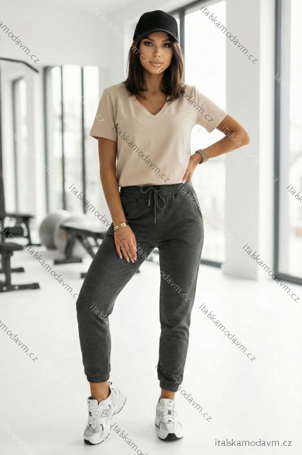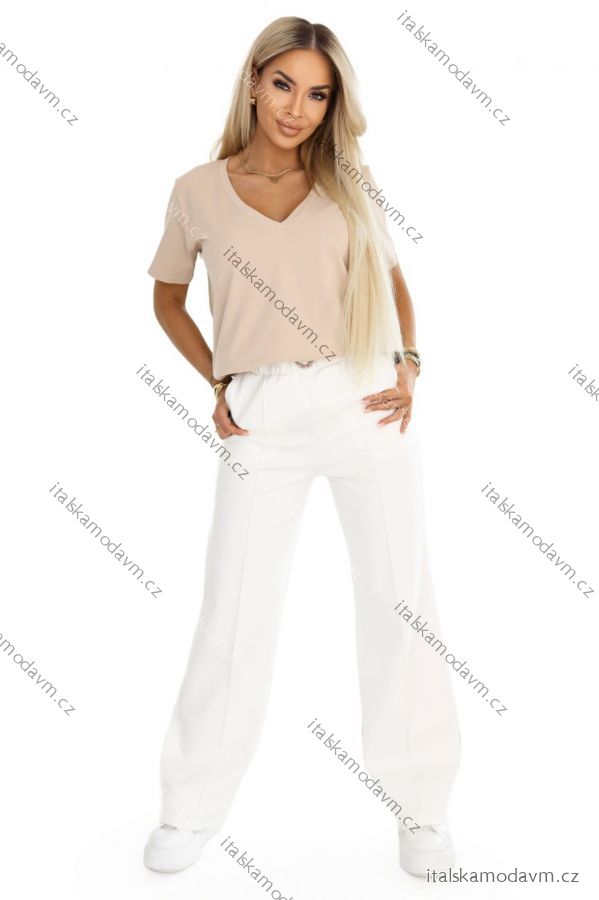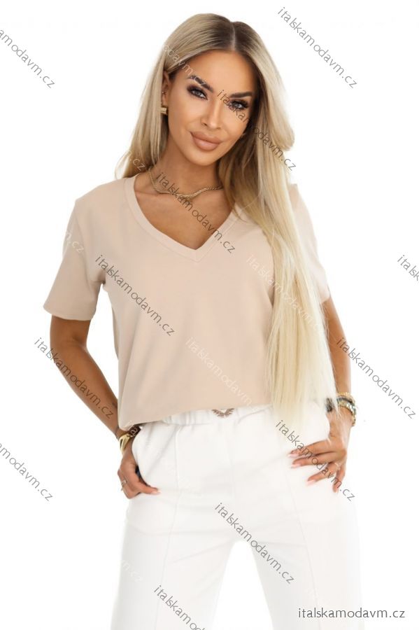 ZBOŽÍ (22027) > 665-3 Bavlnený dámsky top s výstrihom do V a krátkym rukávom - béžový