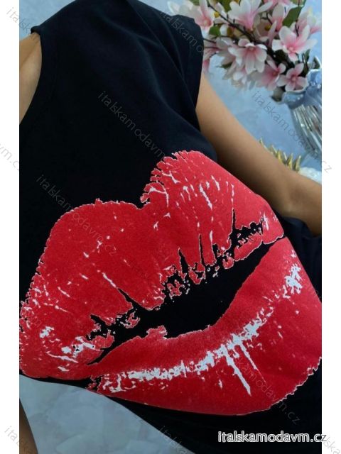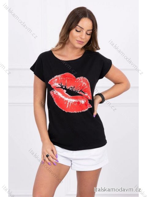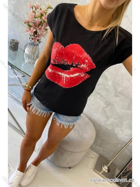 Představujeme vám módní halenku. Halenka s potiskem rtů Blůza s krátkým rukávem. Skvělá grafika na tričku. Perfektní halenka pro šortky. Halenka je vyrobena z vysoce kvalitního materiálu. Velikost je univerzální a bude vhodná pro dámy na sobě velikosti S, M nebo L.