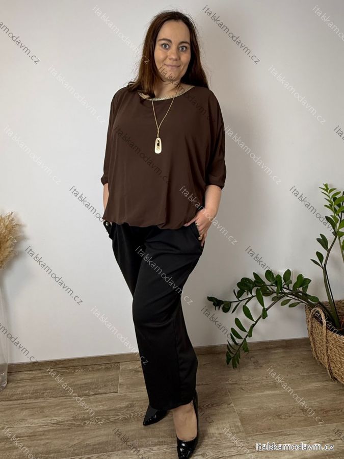 Blúzka elegantná s príveskom 3/4 dlhý rukáv dámska nadrozmer SIRENA (48/50/52 ONE SIZE) TALIANSKA MÓDA IMD26004/DU tmavo hnedá