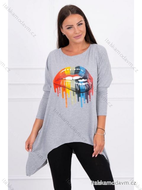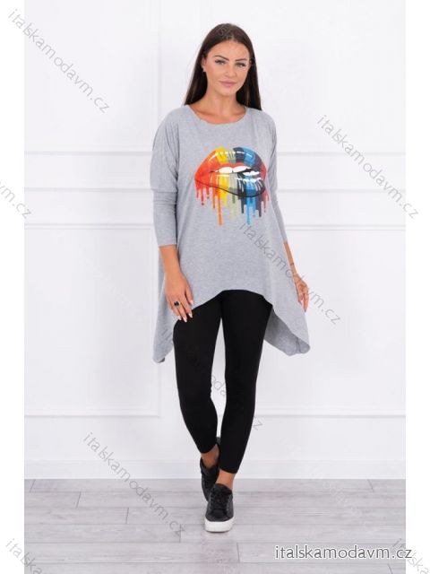 ZBOŽÍ (21549) > oblečenie dámske (17375) > Topy, tričká, tuniky a tielka (2338) > Bluzka oversize z nadrukiem tęczowych ust szara