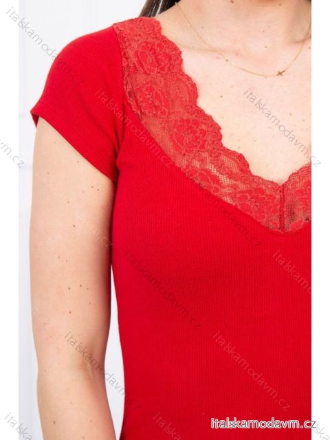 ZBOŽÍ (21609) > oblečenie dámske (17437) > Topy, tričká, tuniky a tielka (2344) > Bluzka z koronkowym dekoltem czerwona