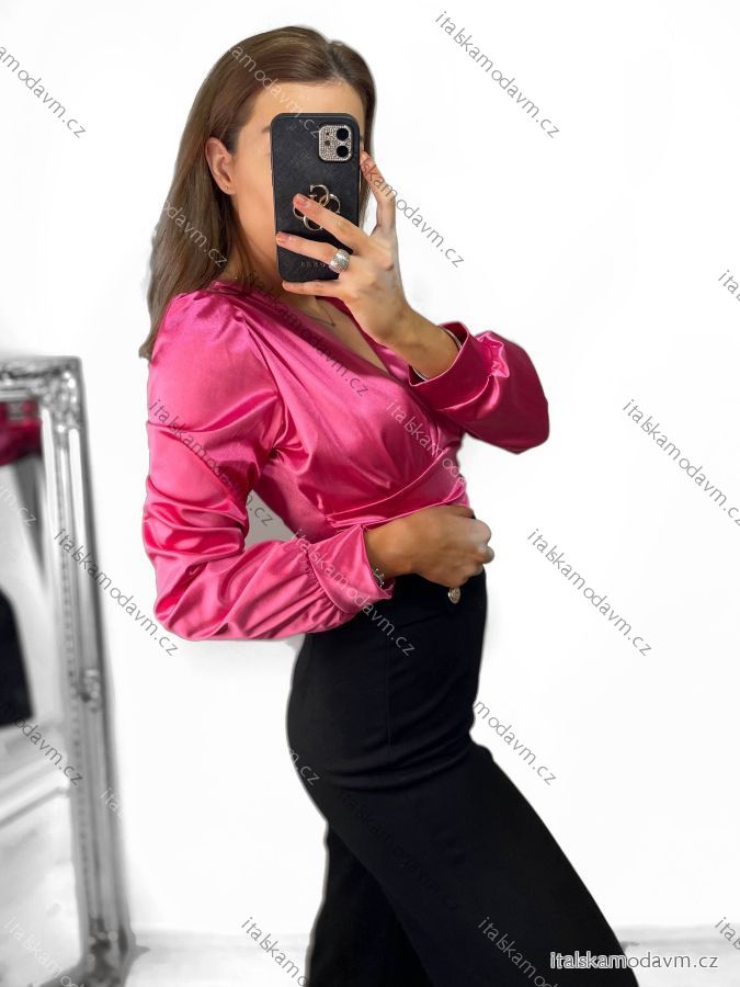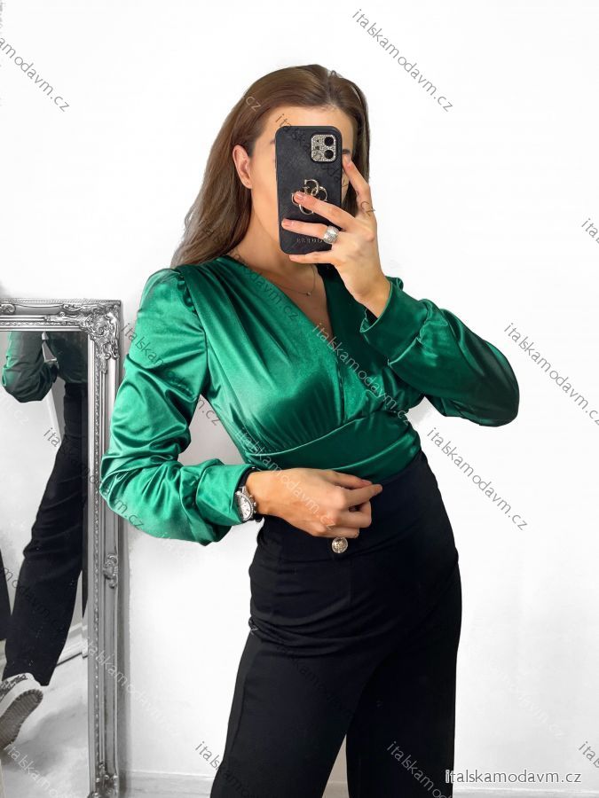 Body alá blúzka elegantný saténové dlhý rukáv dámske (S/M ONE SIZE) TALIANSKA MÓDA IMM2333030