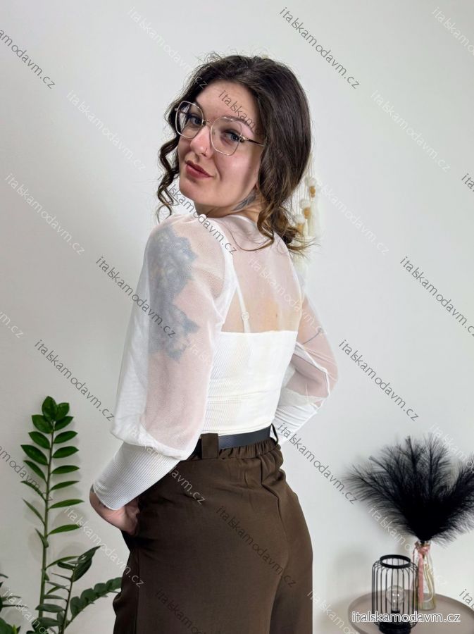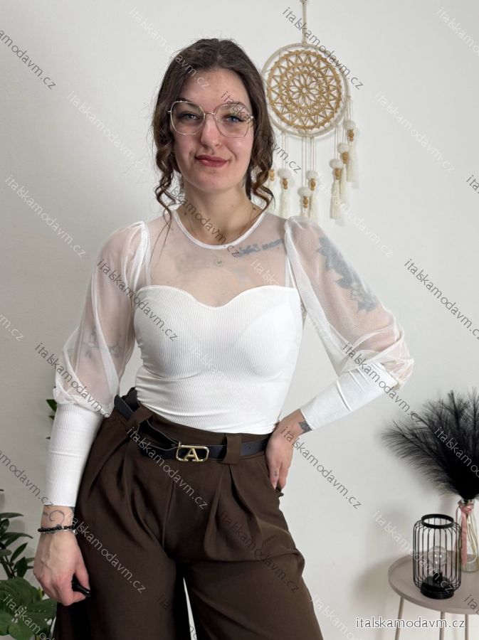 Body elegantní dlouhý rukáv dámské (XS/S/M ONE SIZE) ITALSKÁ MÓDA IMM25M44059 bílá XS/S/M