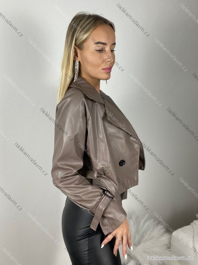 Bunda koženková dlouhý rukáv dámská (S/M/L ONE SIZE) ITALSKÁ MÓDA IMPLU254475/DR S/M/L hnědá