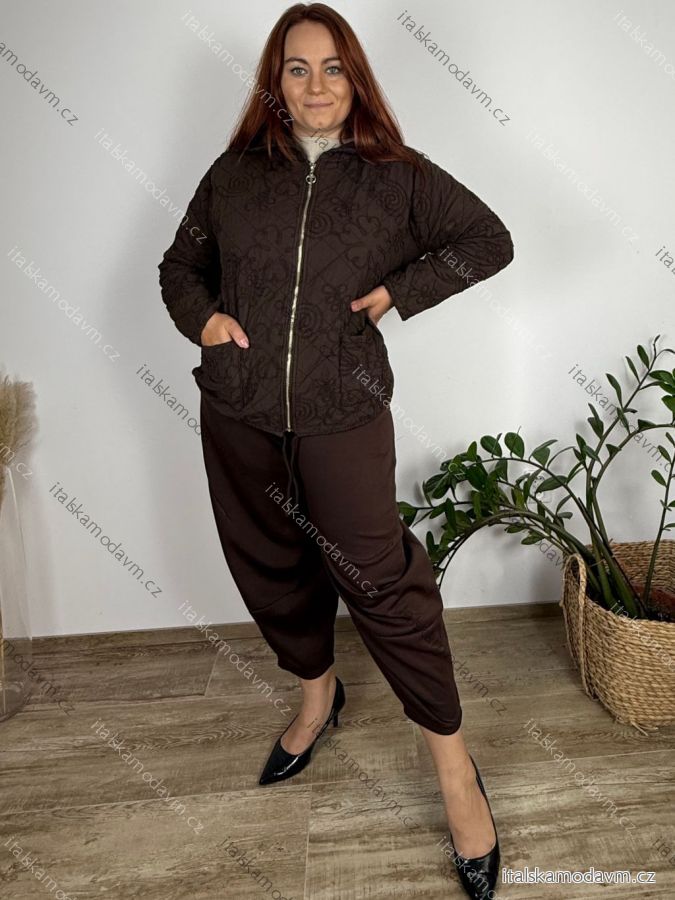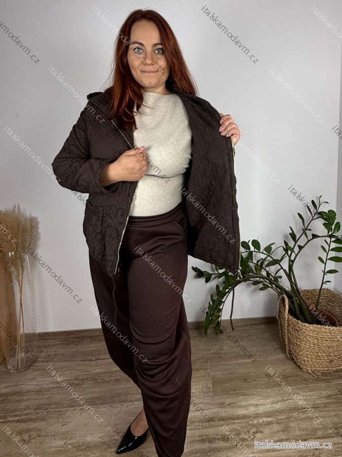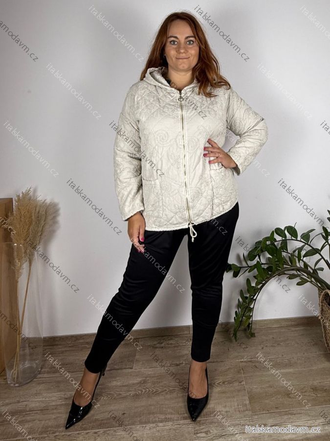 Bunda podzimní s kapucňou dlhý rukáv dámska nadrozmer EVELINA (50/52/54 ONE SIZE) TALIANSKA MÓDA IMSM251133