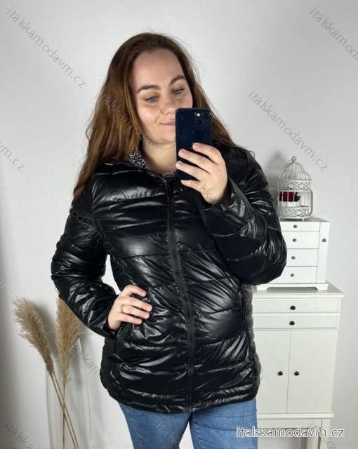 Bunda s kapucňou jarní dlhý rukáv dámska nadrozmer (3XL-7XL) FRANCÚZSKA MÓDA FMWB228029B21/DR - čierna - 4XL