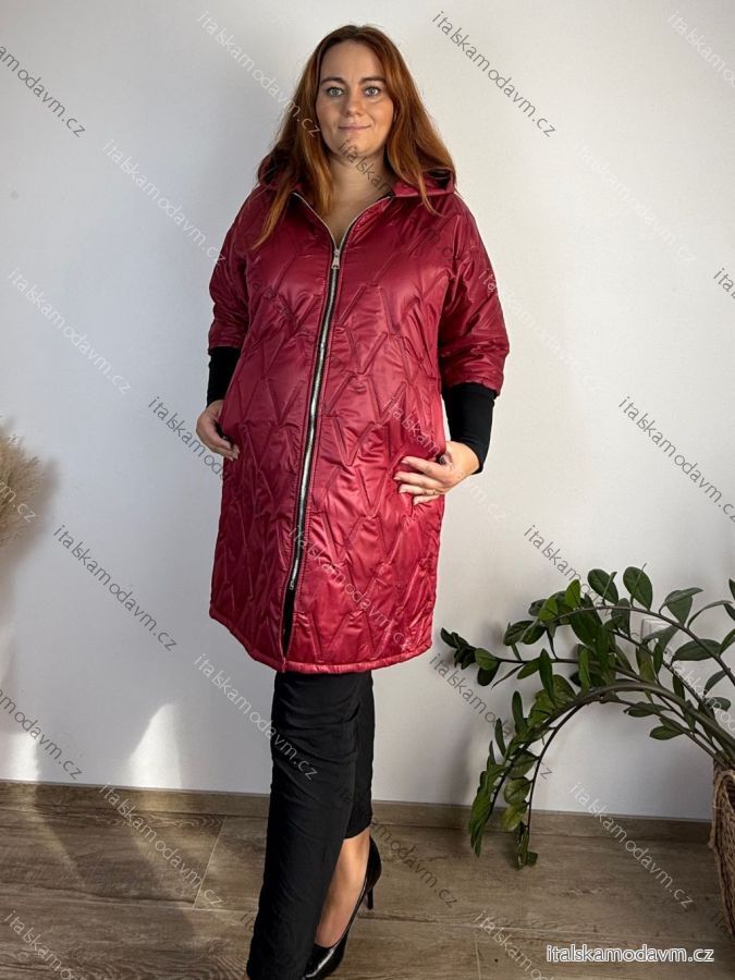 Bunda slabá prošívaná oversize dlouhý rukáv dámská nadrozměr DANNA (52/54/56 ONE SIZE) ITALSKÁ MÓDA IM425664/DUR 52/54/56 vínová