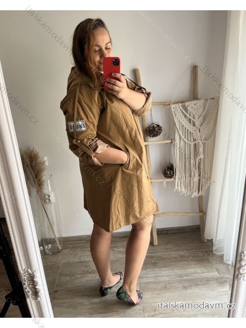 Bunda slabá s kapucí dámská nadrozměr (XL/2XL/3XL ONE SIZE) ITALSKÁ MÓDA IM4221307/DU 2XL/3XL hnědá