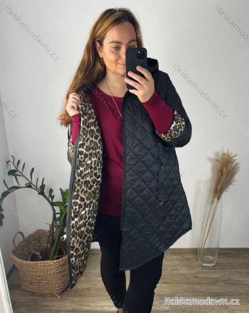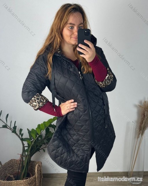 Bunda slabá s kapucí dlouhý rukáv dámská nadrozměr (54/56 ONE SIZE) ITALSKÁ MÓDA IMC24430/DU 54/56 Černá