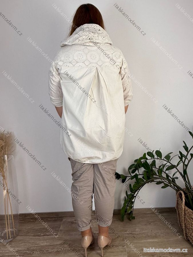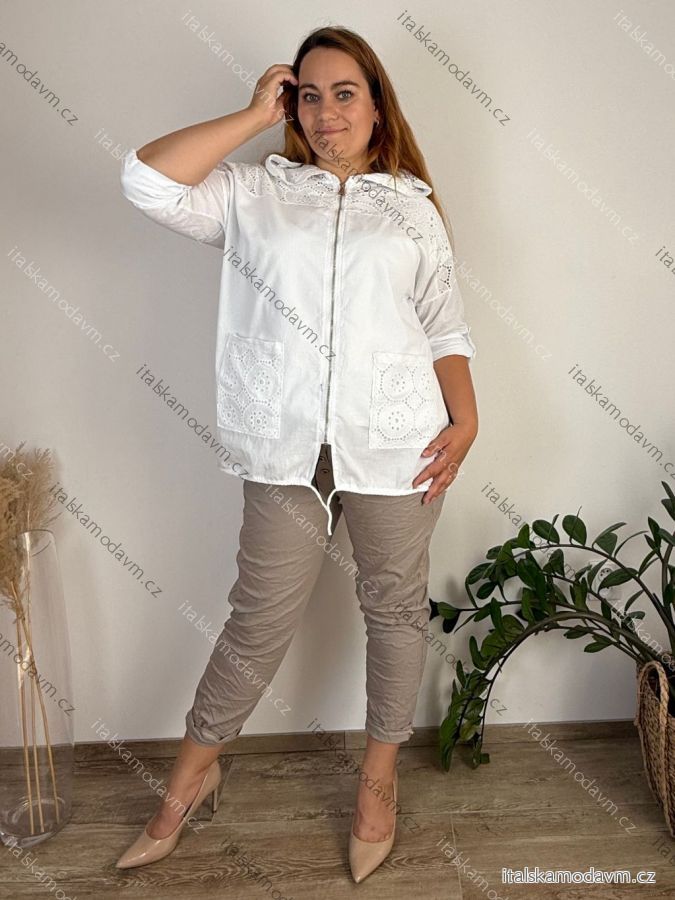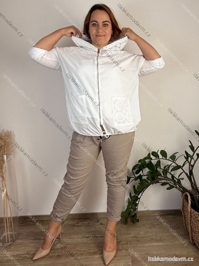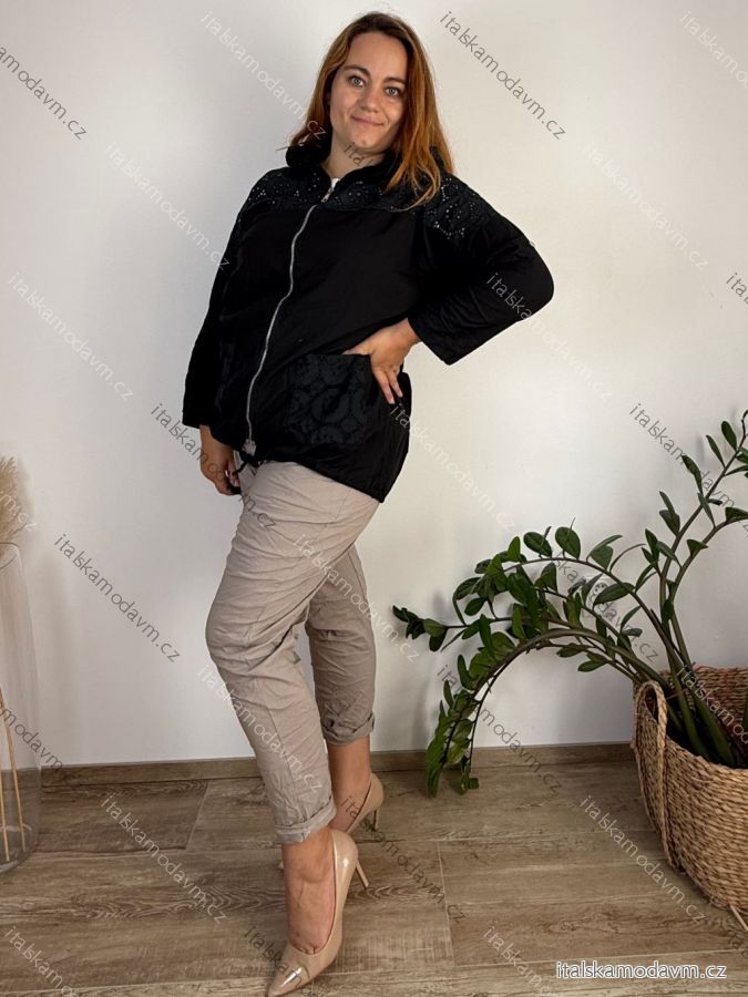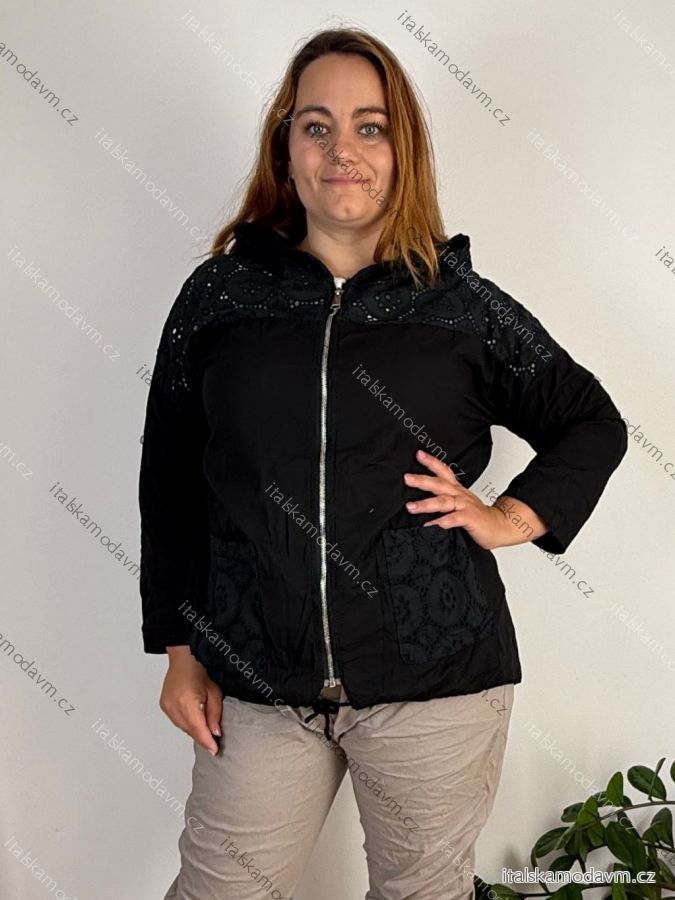 Bunda slabá s kapucí dlouhý rukáv dámská nadrozměr EVE (50/52/54 ONE SIZE) ITALSKÁ MÓDA IMSM251119/DUR 50/52/54 Černá